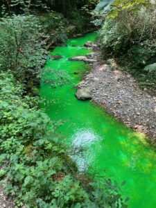 La Fédération des Sociétés de Pêche Genevoises FSPG a coloré 4 rivières genevoises le dimanche 15 juin 2025 avec de la Fluorecéine. Cette action « coup